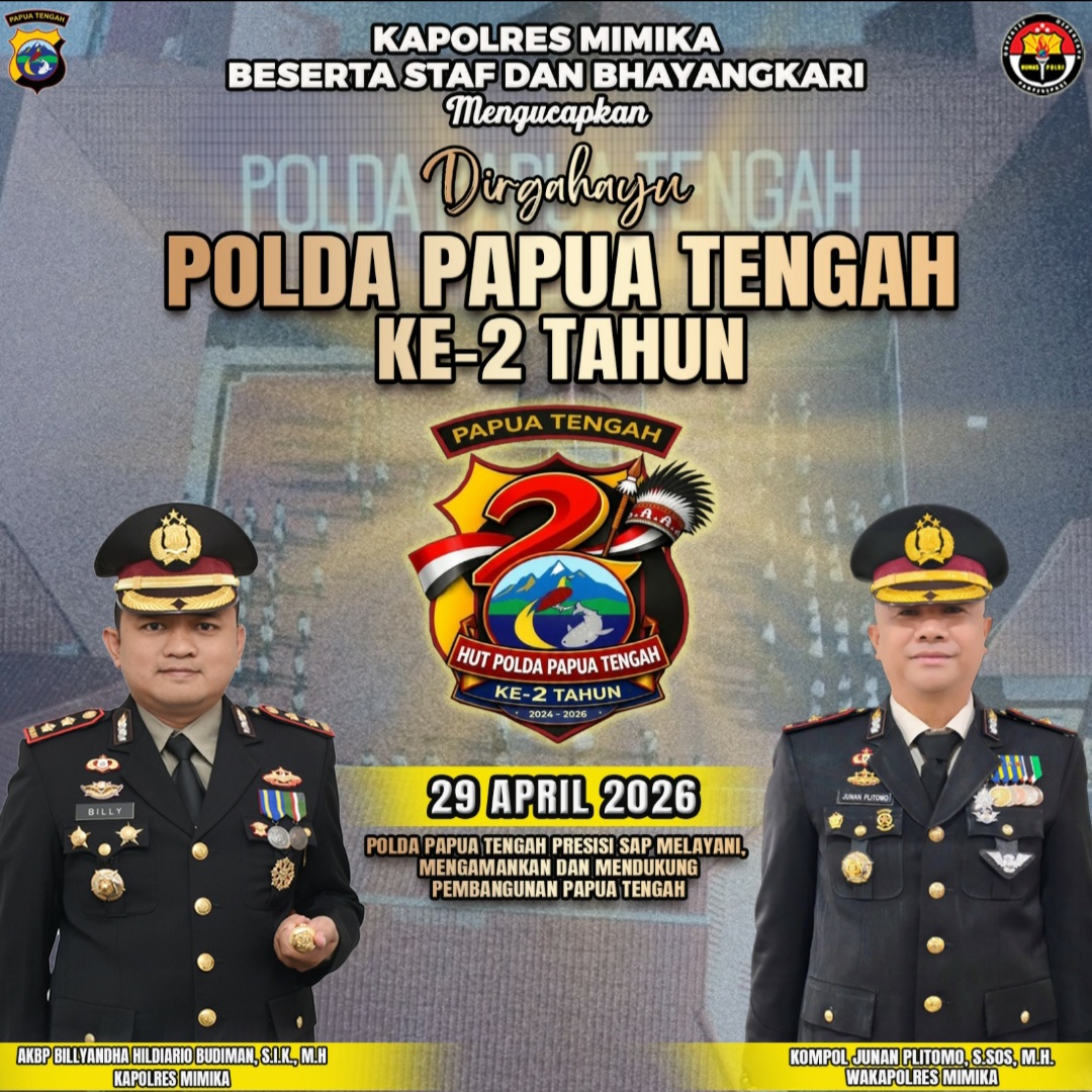 TIMIKA,KTP.com – Pemerintah Kabupaten (Pemkab) Mimika menggelar apel gabungan dalam rangka memperingati Hari Otonomi Daerah ke-30, bertempat di Pusat Pemerintahan SP 3, Senin (27/4/2026). Kegiatan ini...
