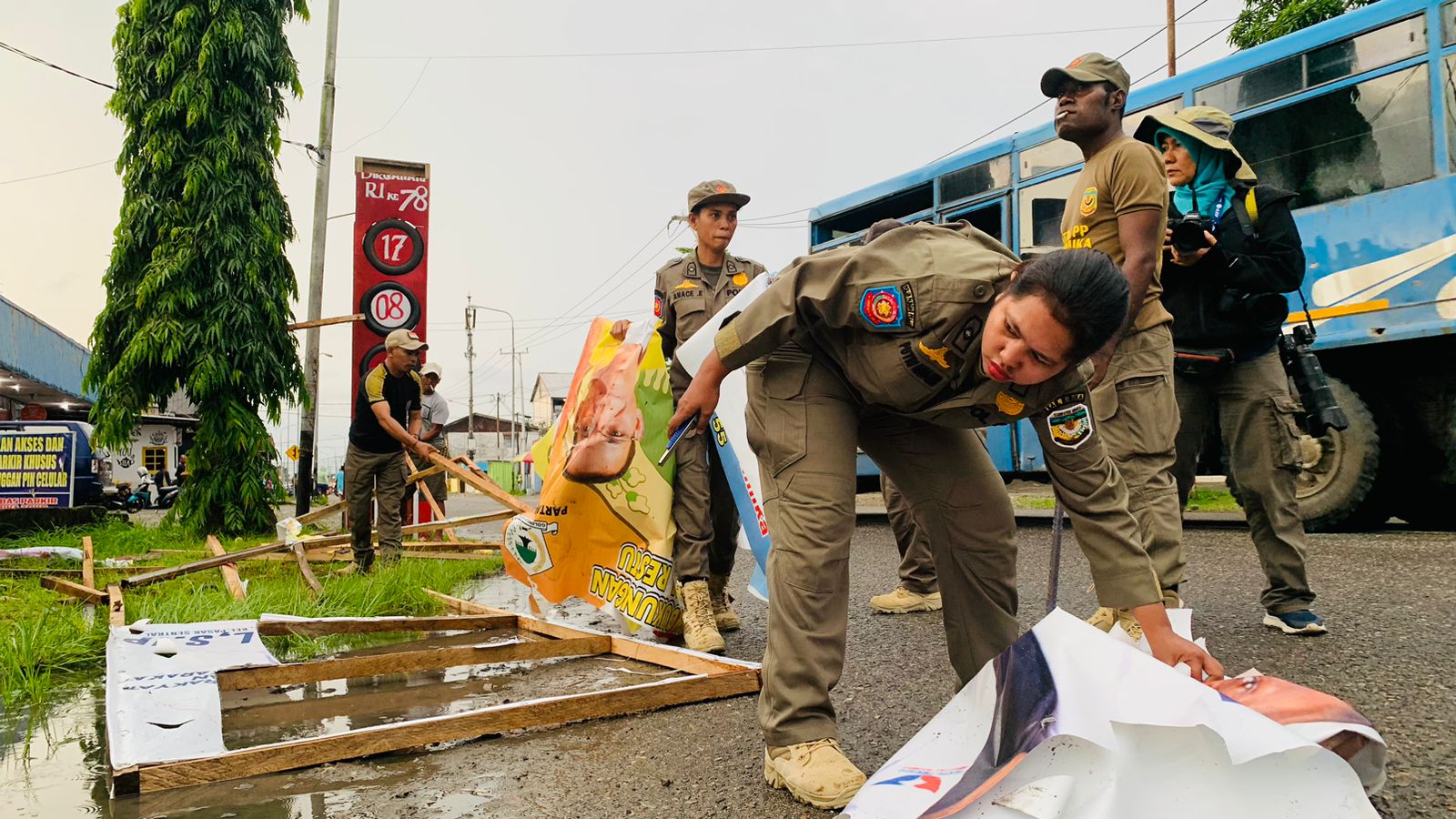 TIMIKA,KTP.com – Badan Pengawasan Pemilu (Bawaslu) Kabupaten Mimika bersama Satuan Polisi Pamong Praja (Satpol-PP) dan sentra Penegakkan Hukum Terpadu (Gakkumdu) melalukan penertiban terhadap alat peraga kampanye (APK) di Mimika, Papua Tengah, Senin (12/2/2024).