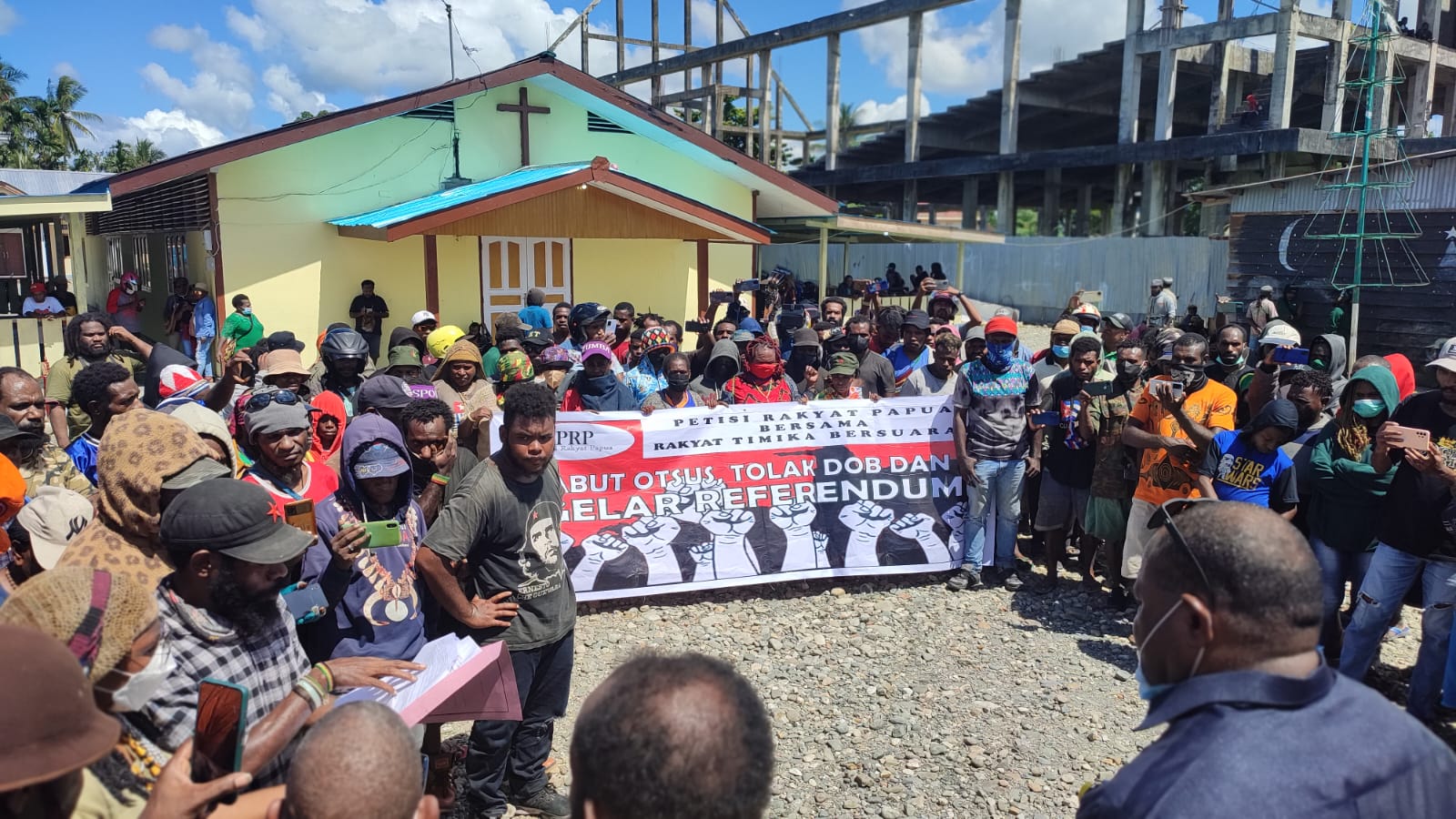 TIMIKA,KTP.com – Aksi tolak pembentukan Daerah Otonomi Baru (DOB) dan Otonomi khusus (Otsus) jilid dua di Kabupaten Mimika sempat ricuh, sekelompok massa dari Petisi Rakyat Papua (PRP) yang berkumpul di Gereja Bahtera jalan C Heatubun menyerahkan aspirasi kepada DPRD Mimika, Jumat (3/6/2022).