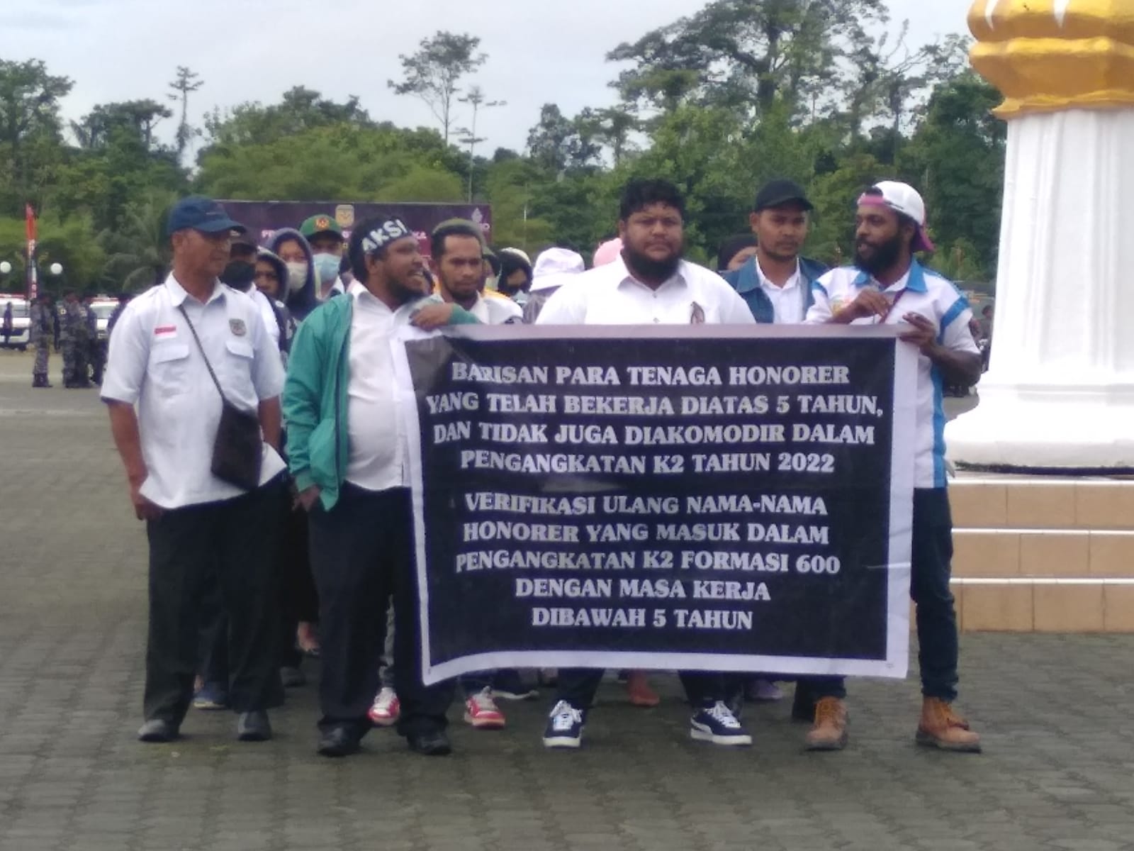 TIMIKA,KTP.com – Puluhan honorer yang tergabung dalam Aliansi Honorer Mimika mendatangi Kantor Sentra Pemerintah SP 3 Distrik Kuala Kencana, Kabupaten Mimika, Provinsi Papua, Rabu (17/8/2022).