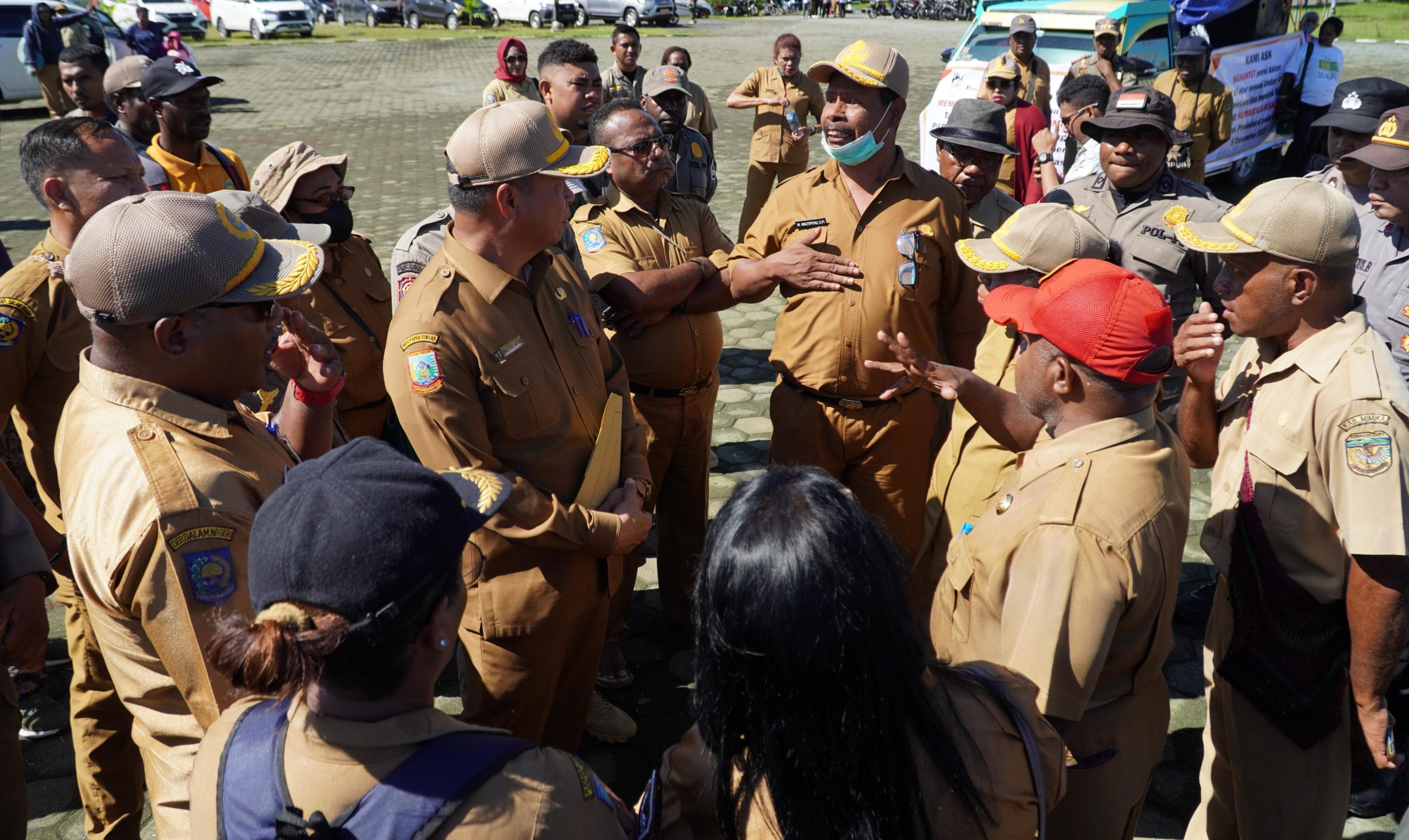 Aksi demo ASN diterima langsung Penjabat (Pj) Sekda Mimika,Dominggus Robert Mayaut sekaligus berkoordinasi dengan para ASN.