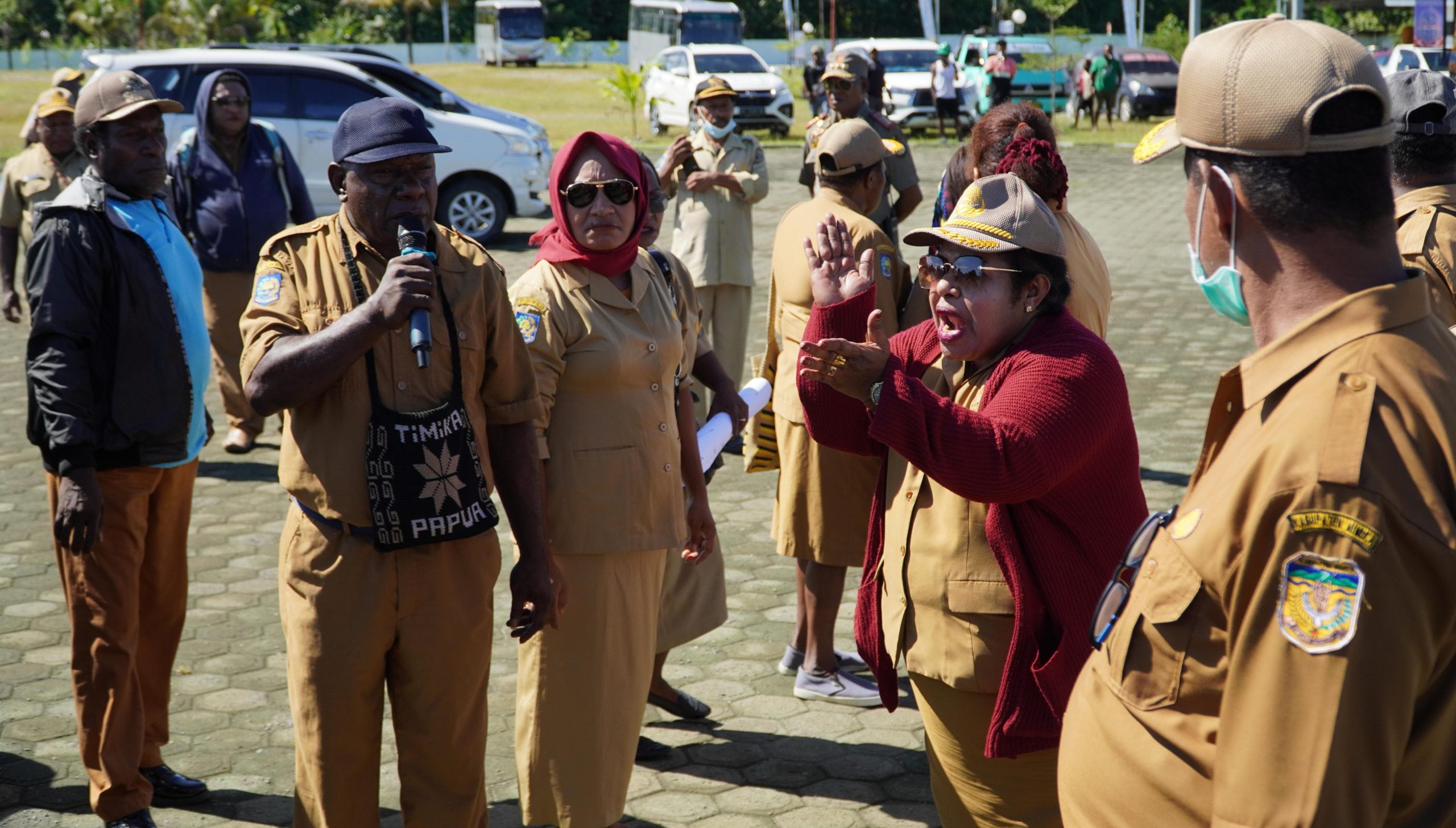Pj Sekda Kabupaten Mimika, Dominggus Robert Mayaut berdialog bersama para ASN non job di halaman kantor Pusat Pemerintahan Kabupaten Mimika.