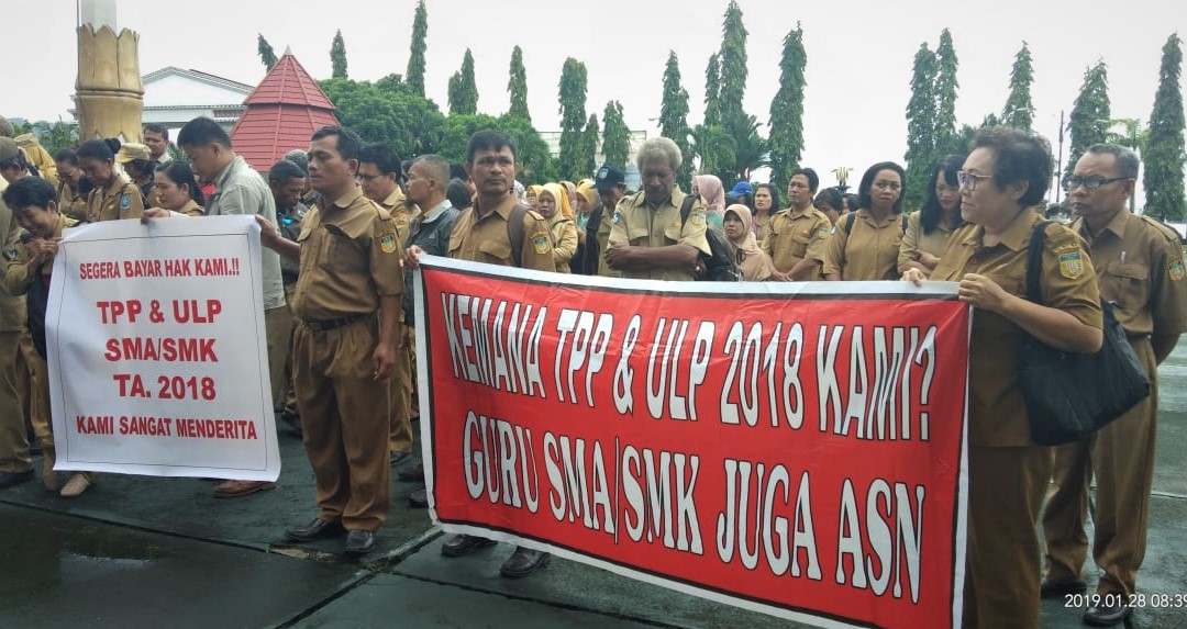 Seperti diberitakan sebelumnya, seratusan guru SMA-SMK menggelar unjuk rasa ke Kantor Gubernur Papua menuntut pembayaran tunggakan tunjangan mereka yang belum dibayarkan sepanjang tahun 2018.