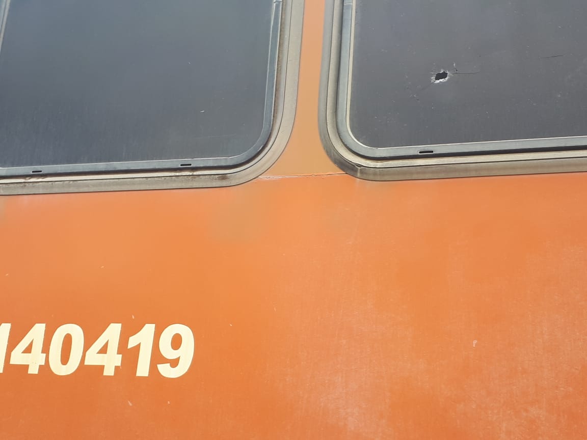 Bus ditembak sebanyak tiga kali dari arah bawa tower mile 53. Tembakan tersebut mengenai kaca bus dengan nomor lambung 140487, dan kaca mobil 140419.