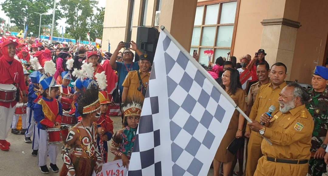 Dilepas Bupati Mimika, Karnaval HUT RI ke 77 di Mimika Berlangsung Meriah
