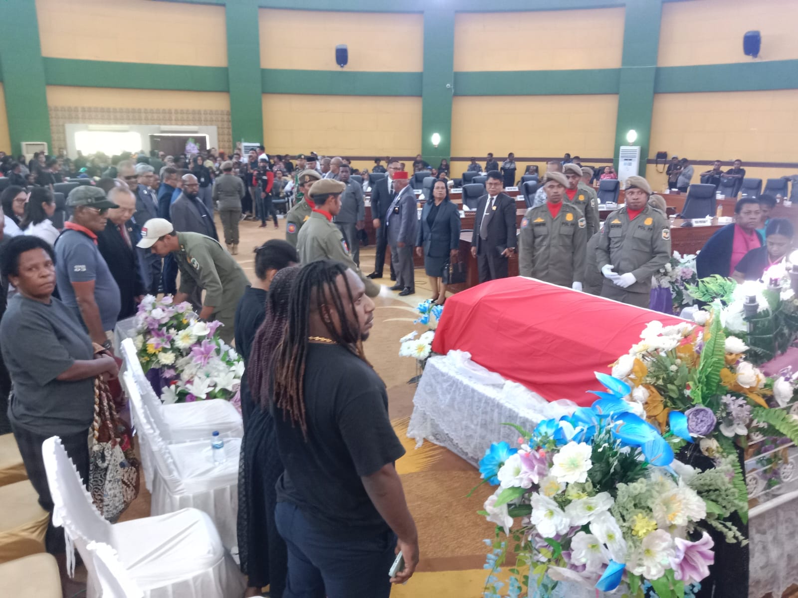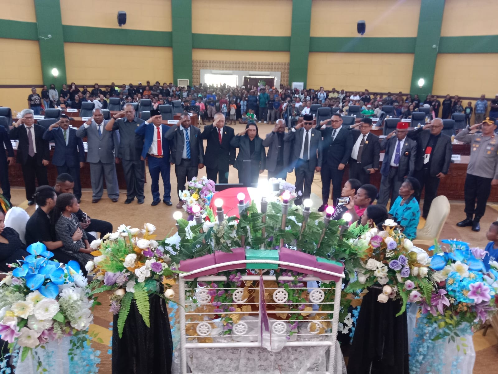 Diawali dengan penghormatan terakhir kepada Almarhum LEO kocu dari Asisten III, Pimpinan DPRD dan Anggota Serta Forkopimda Mimika, selanjutnya menyanyikan lagu Indonesia Raya.