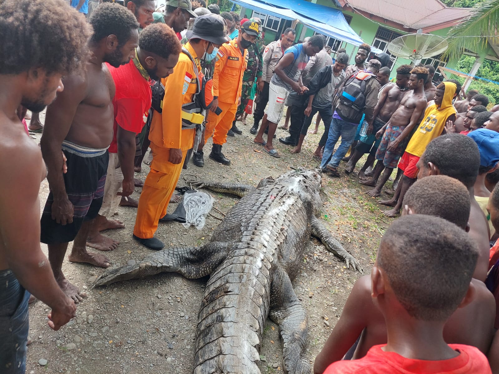 Setelah korban diambil dari mulut buaya yang berukuran tujuh meter panjangnya, korban langsung dievakuasi oleh Tim SAR gabungan menuju rumah duka bersama dengan buaya yang memangsa korban.