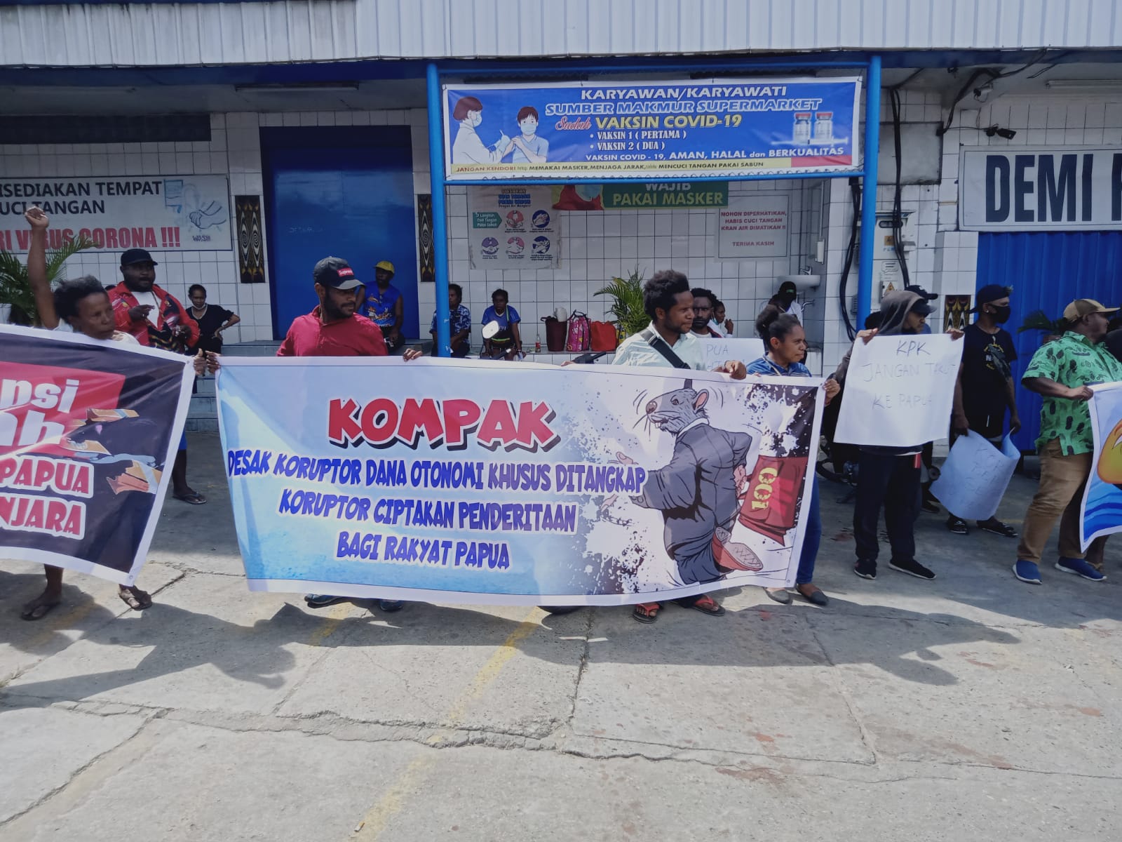 “Dengan segera, para pemimpin Papua menetapkan batas waktu penyelesaian berbagai dugaan tindak korupsi yang berlangsung bertahun tahun. KOMPAK menyerukan, apabila tak mampu tuntaskan korupsi, segera mundur dari jabatan,” tegas Gifly Buiney saat membacakan Pernyataan Sikap KOMPAK dalam unjuk rasa memperingati Hari Antikorupsi Internasional di Jayapura, Papua, Kamis (9/12/2021).