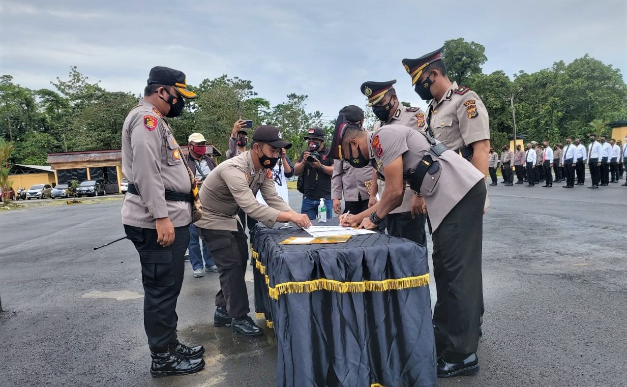 TIMIKA, KTP.com – Kapolres Mimika AKBP IGG Era Adhinata memimpin serah terima jabatan di lingkungan Polres Mimika di Mapolres Mimika, Kuala Kencana, Senin (1/3/2021).