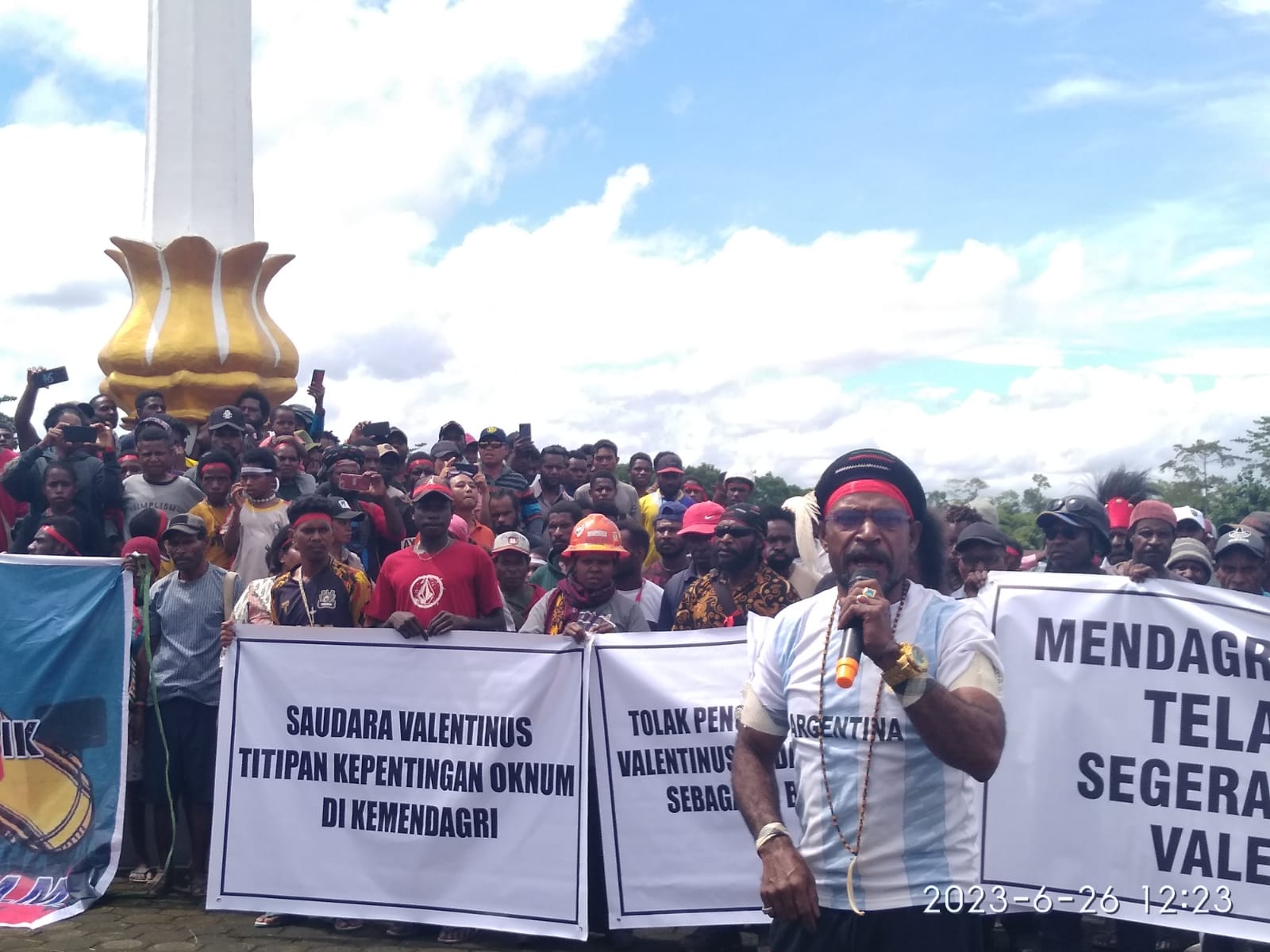 Pantau dilapangkan Hampir seluruh orator yang melakukan aksi demo tersebut secara tegas menolak Valentinus Sudaryanto Suminto, menjadi Pj Bupati Mimika.