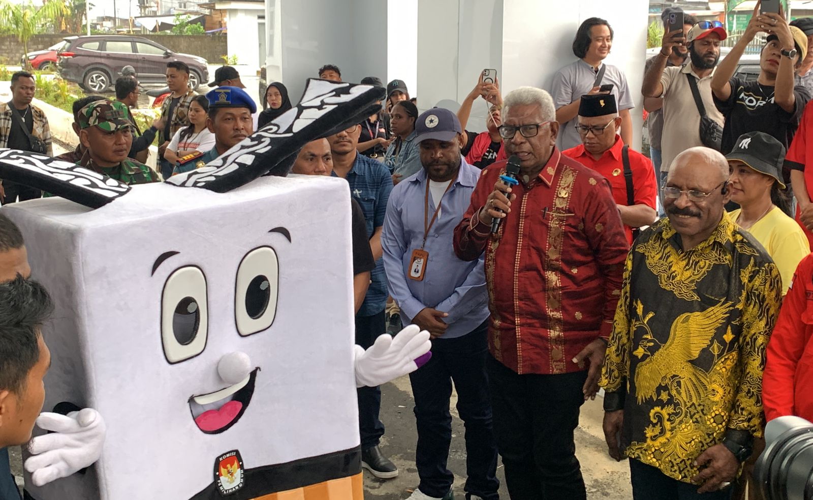 KPU Kabupaten Mimika mendatangkan penyanyi-penyanyi asal Tanah Papua seperti Whllyano, Justy Aldryn, Doddie Latuharihari dan Toton Caribo untuk memeriahkan acara peluncuran tersebut.(MWW)