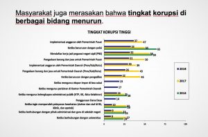 JAKARTA, Kabartanahpapua.com – Hasil Survei Nasional Korupsi 2018 menunjukkan 4 sektor yang mengalami penurunan angka korupsi atau praktik pungutan liar (pungli) yang cukup signifikan. Ke-4 sektor vital ini, yakni sektor pendidikan, kesehatan, administrasi publik, dan sektor pelayanan kepolisian di antaranya mengalami penurunan lebih dari 50 persen.