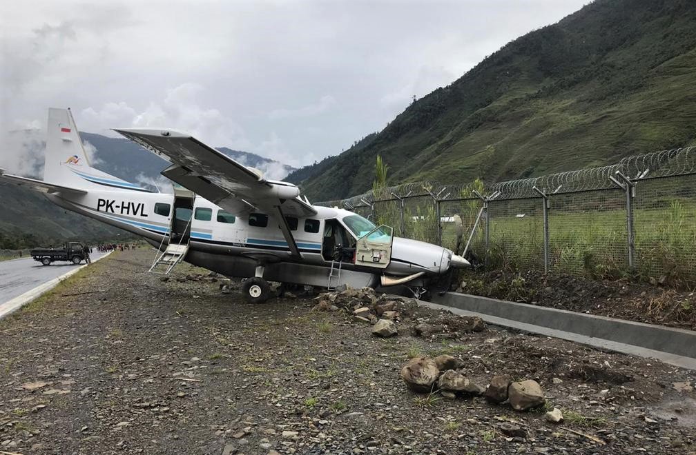 Pesawat Dimonim Air PK-HVL Tergelincir di Bandar Udara Mulia Puncak Jaya