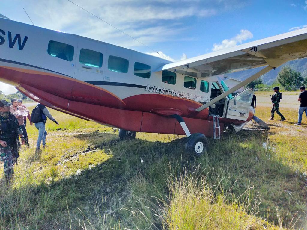 Pesawat SAS PK-FSW Tergelincir di Bandara Sugapa Kabupaten Intan Jaya 6 Penumpang selamat