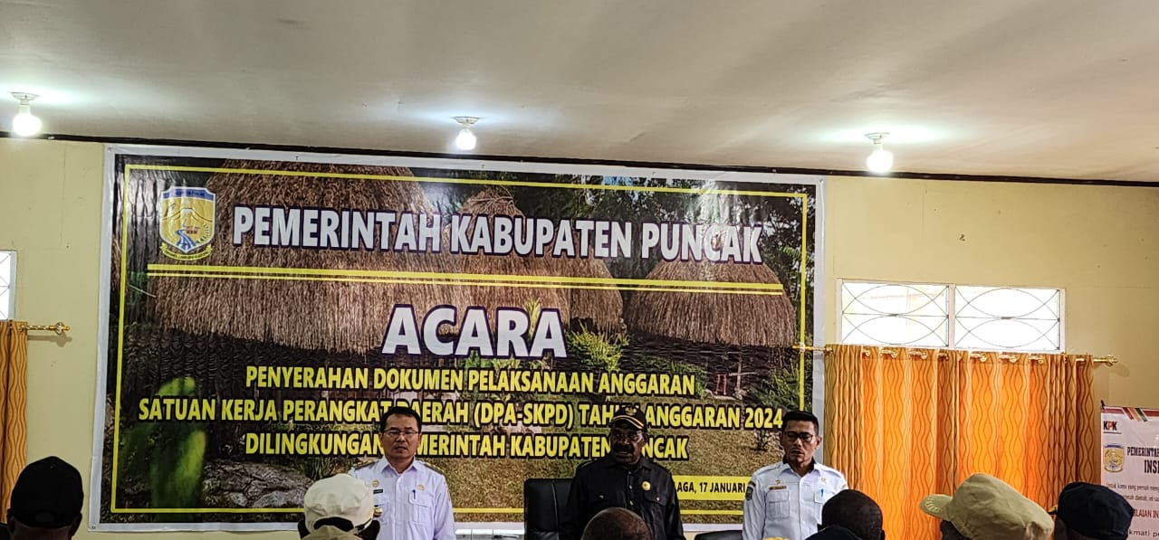 ILAGA,KTP.com – Penjabat (Pj) Bupati Puncak,Provinsi Papua Tengah, Ir Darwin Tobing, menyerahkan Dokumen Pelaksana Anggaran (DPA) kepada masing-masing Satuan Kerja Perangkat Daerah (SKPD) dilingkup Pemerintah Kabupaten Puncak,Rabu (17/1/2024).