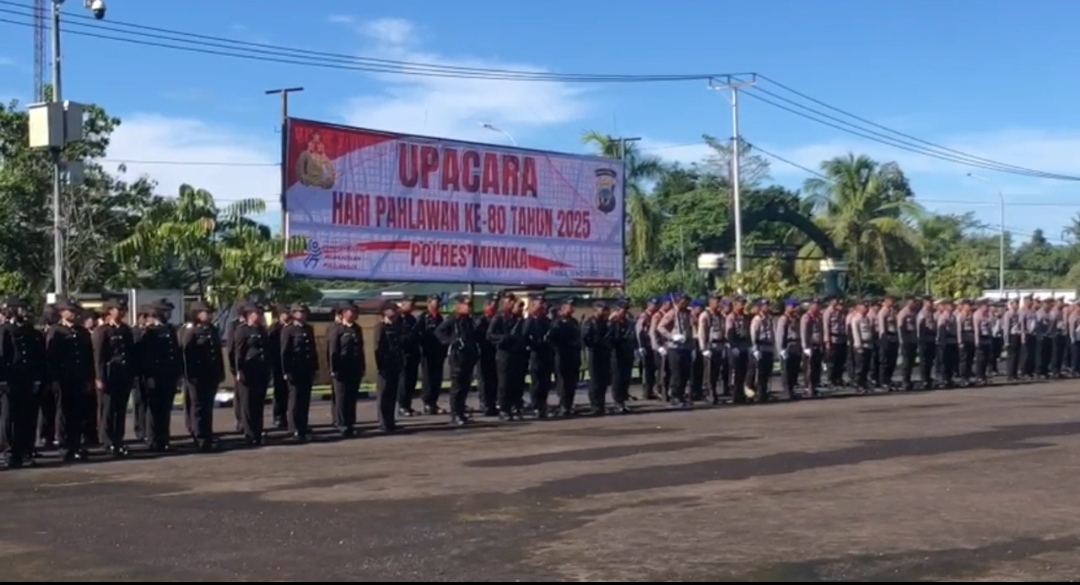 TIMIKA,KTP.com – Dalam rangka memperingati Hari Pahlawan ke-80 tahun 2025, Kepolisian Resor (Polres) Mimika menggelar upacara pengibaran bendera di lapangan Mapolres Mimika, Senin (10/11/2025).