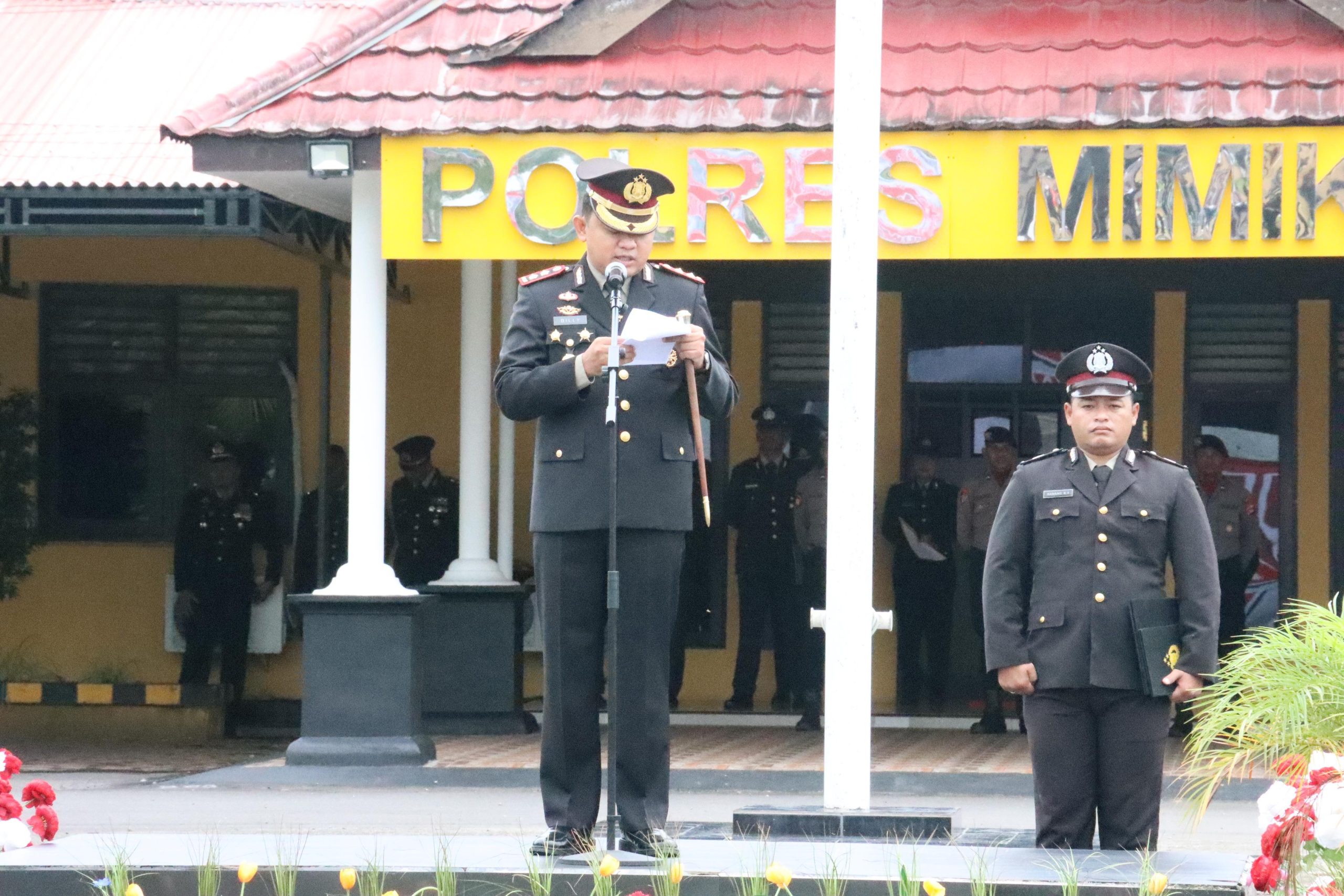 Kapolres Mimika, AKBP Billyandha Hildiario Budiman bertindak selaku inspektur memimpin jalannya upacara tersebut.