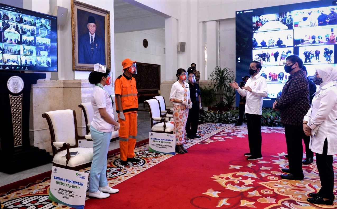 “Pemerintah telah meluncurkan banyak sekali stimulus ekonomi. Hari ini kita lengkapi lagi yang namanya tambahan subsidi gaji. Totalnya nanti akan diberikan kepada 15,7 juta pekerja, masing-masing sebesar Rp2,4 juta,” ujar Presiden dalam sambutannya.