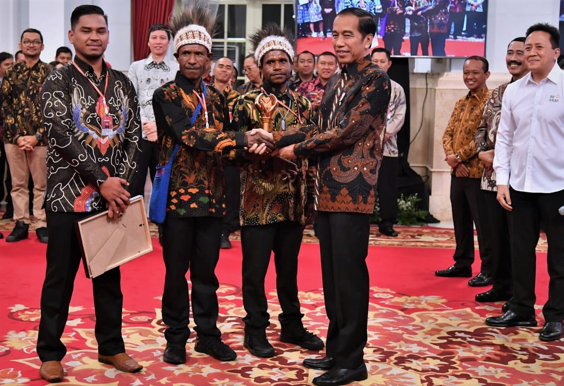 JAKARTA, Kabartanahpapua.com – Presiden Joko Widodo bersilaturahmi dengan para pemenang Festival Gapura Cinta Negeri, di Istana Negara, Jakarta, Senin (2/9/2019). Festival yang berlangsung sejak 17 Juli sampai 17 Agustus 2019 lalu, merupakan rangkaian perayaan 74 tahun kemerdekaan Republik Indonesia.