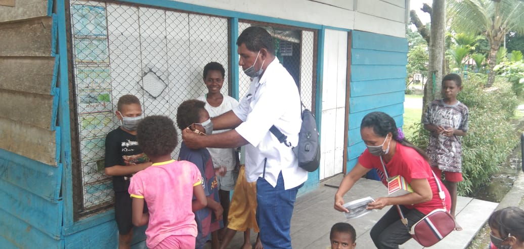 Sebanyak 1000-an masker dibagi-bagikan kepada warga secara gratis oleh tim relawan Covid-19 Kampung Nawaripi pada Rabu (26/08/2020) yang dipimpin oleh Norbertus Ditubun, Kepala Kampung Nawaripi dan juga turut hadir, Aris Mendila selaku kordinator tenaga pendamping profesional TPPI-P3MD Kabupaten Mimika.