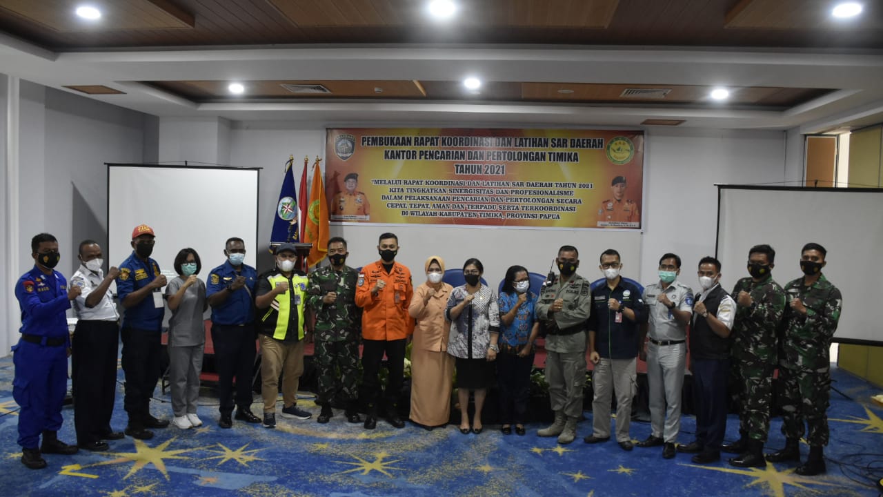 TIMIKA,KTP.com-Kantor SAR Timika menggelar kegiatan rapat koordinasi, pembukaan latihan SAR daerah dan pameran peralatan rescue bertempat di ruang pertemuan Hotel Horison Ultima Timika,Kamis (24/6/2021).