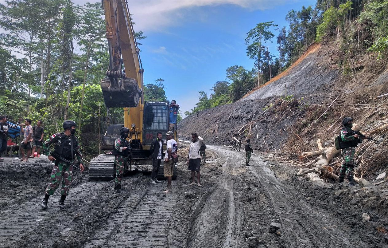 JAYAPURA, KTP.com – Satgas Pengamanan Perbatasan (Pamtas) Yonif 312/Kala Hitam membantu Satker PJN Jayapura tangani tanah longsor di ruas jalan Trans Papua di distrik (kecamatan) Senggi, Kabupaten Keerom.