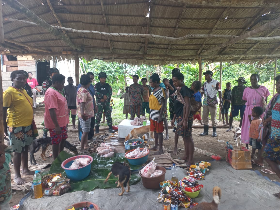 Kegiatan Komsos kepada Masyarakat kampung Epame dilaksanakan bersamaan dengan pendistribusian bantuan dari dinas sosial berupa sembako dan daging ayam.