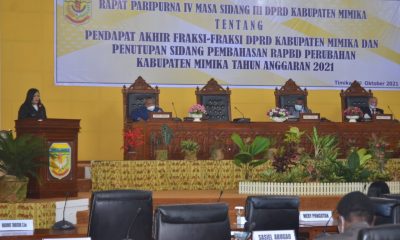 Ranperda APBD-P Mimika 2021 Senilai 4,4 T Diterima 6 Fraksi di DPRD Pada Sidang Paripuran IV Masa Sidang III