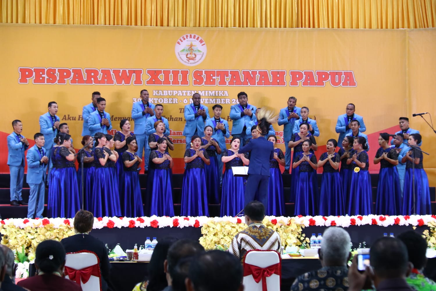 TIMIKA,KTP. com – TUAN rumah Kabupaten Mimika akhirnya tampil memukau membanggakan dan meraih Medali Emas dengan mencatat nilai tertinggi pada ajang Pesta Paduan Suara Gerejawi (Pesparawi) XIII se-Tanah Papua dalam Kategori Lomba bergengsi, Paduan Suara Dewasa Campuran (PSDC).