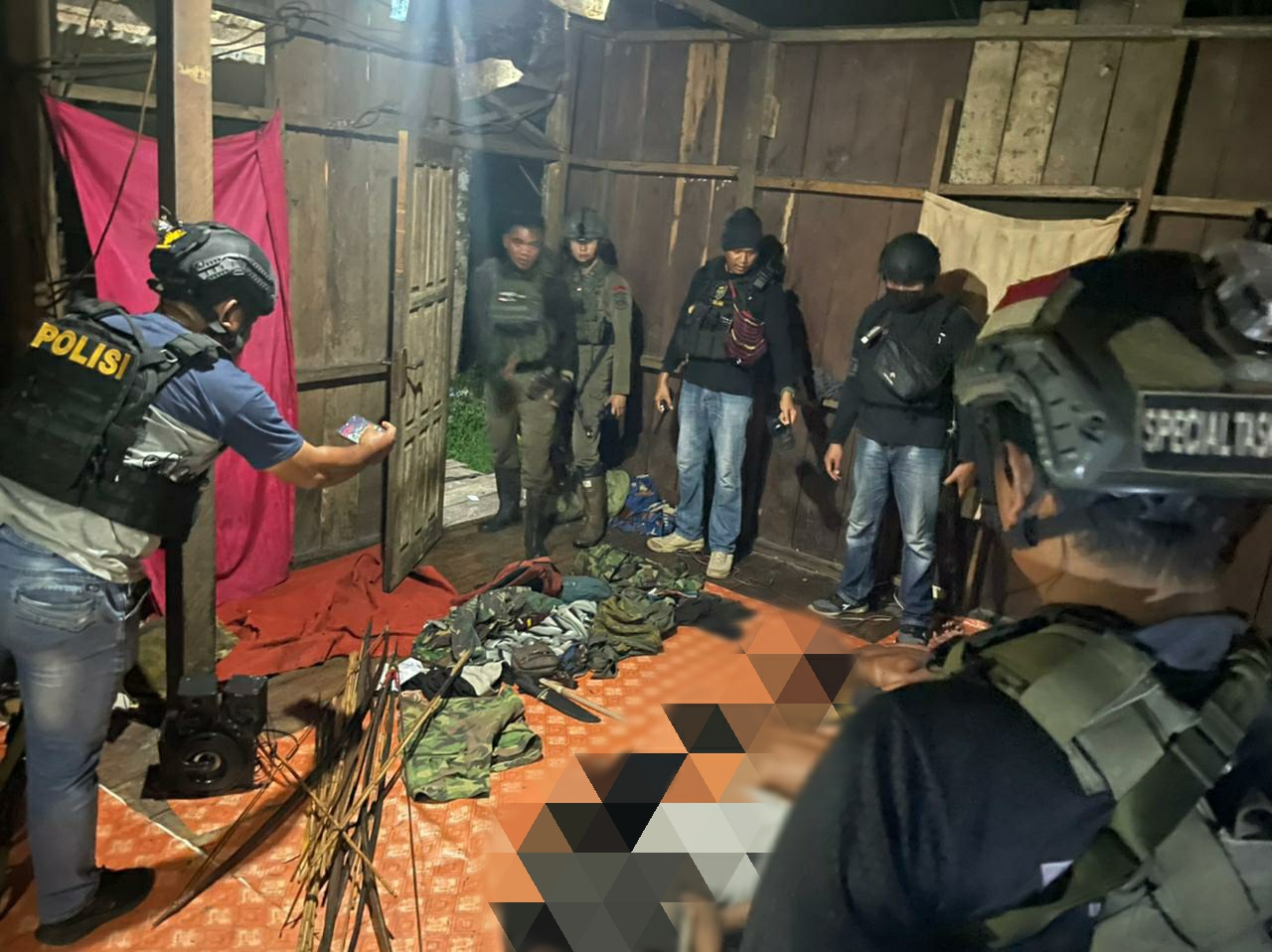 YAHUKIMO,KTP.com – Tim gabungan yang terdiri dari personel Polres Yahukimo dan Satgas Damai Cartenz 2023 melakukan pengrebekan di salah satu rumah yang diduga merupakan tempat persembunyian Kelompok Kelompok Kriminal Bersenjata (KKB) di Jalan Paradiso Belakang Kompleks Anggruk, Distrik Dekai Kabupaten Yahukimo, Kamis (4/5/2023) pukul 03.00 WIT.